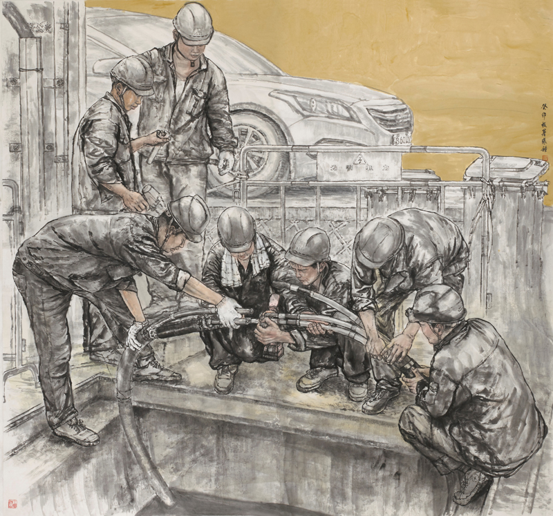 伴隨著“詩畫浙江 · 禮遇南孔”浙江省美術(shù)作品展2023年9月27日在衢州美術(shù)館開展,中國畫《守護(hù)光明》也展出其中。這是作者張鐘于2022年仲夏,以自己真切感受記錄下來的感人場景。當(dāng)時他親臨現(xiàn)場,目睹了電力工人們在酷暑中,不畏艱難,頭頂烈日,搶險施工,保障電力供應(yīng)的情景。通過繪畫手段,創(chuàng)作出這幅2米寬的意筆人物畫作,向無名英雄致敬,為他們的堅毅與奉獻(xiàn)致禮。